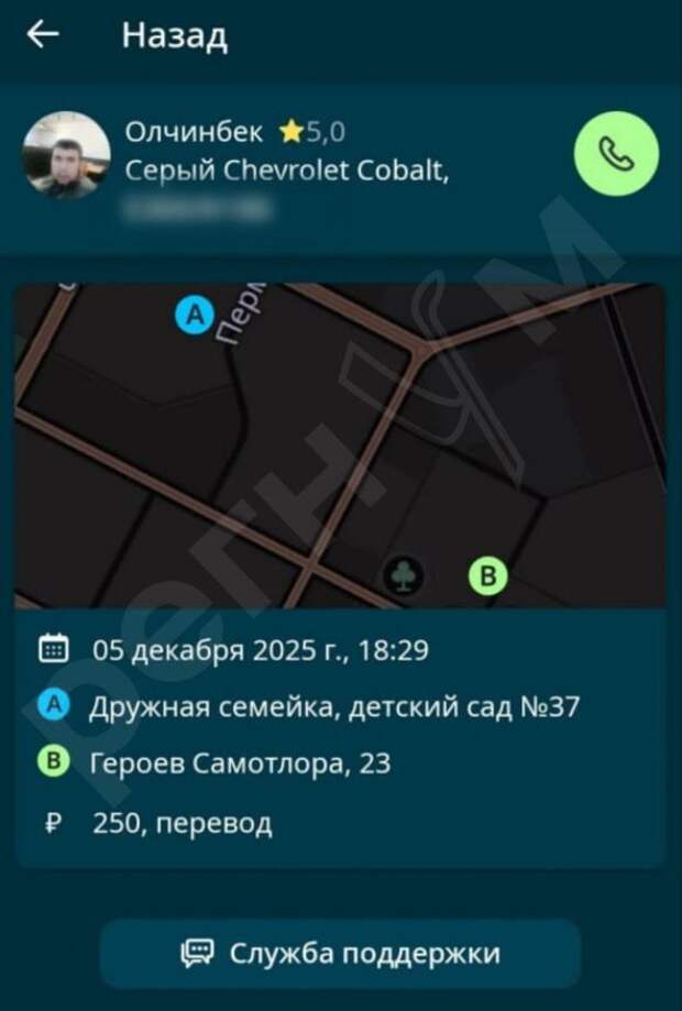 Заказ принял 42-летний гражданин Узбекистана Олчинбек. Вскоре в приложение пришло уведомление, что такси на месте, однако когда Ирина с ребенком вышли на улицу — автомобиля нигде не было.